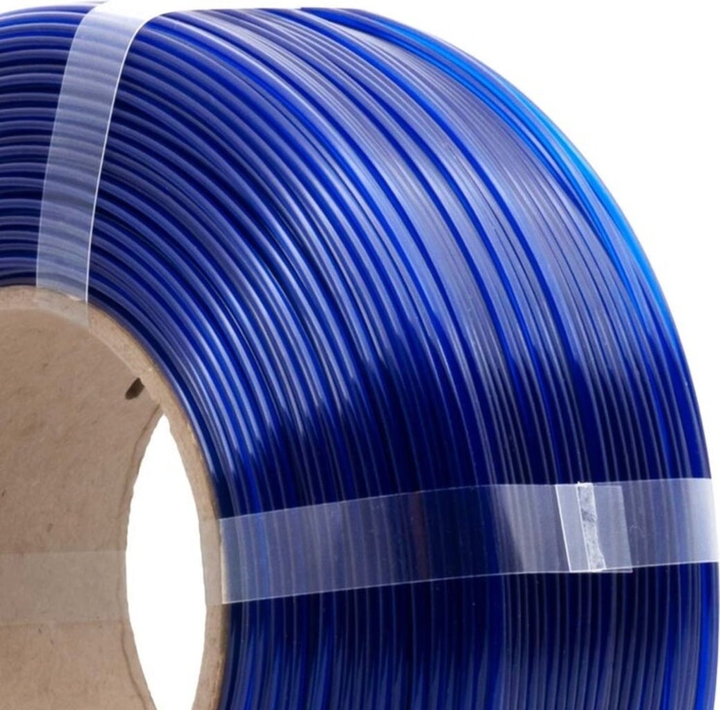 PETG Refill to filament bez szpuli, który jest kompatybilny z AzureFilm Master Spool wielokrotnego użytku. Rozwiązanie to jest bardziej ekologiczne, ponieważ zmniejsza ilość odpadów i minimalizuje wpływ na środowisko.
