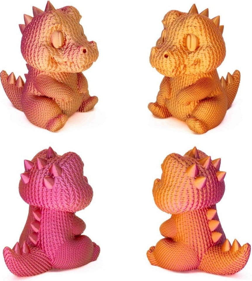 Dzięki najnowocześniejszej technologii koekstruzji, PLA Silk Multicolor łączy dwa lub nawet trzy odcienie w jednym włóknie filamentu. W rezultacie powstają płynne przejścia kolorów i unikalne efekty połysku, które zmieniają się w zależności od kąta patrzenia. Każdy wydruk staje się unikalnym dziełem, niezależnie od tego, czy są to wazony, figurki, biżuteria czy dekoracyjne akcesoria do domu.