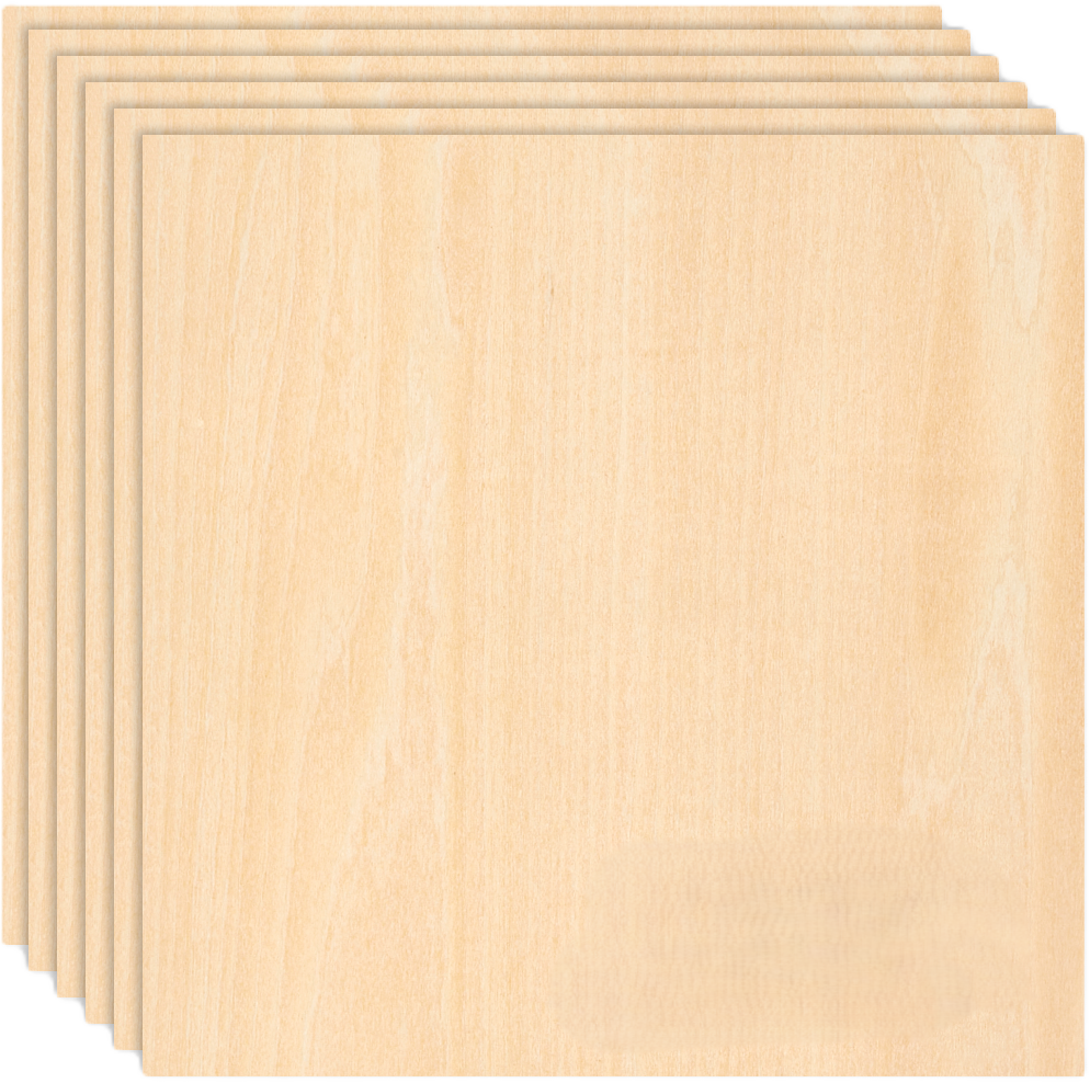 W zestawie znajduje się 6 sztuk sklejki lipowej 3 mm (300 x 300 mm).