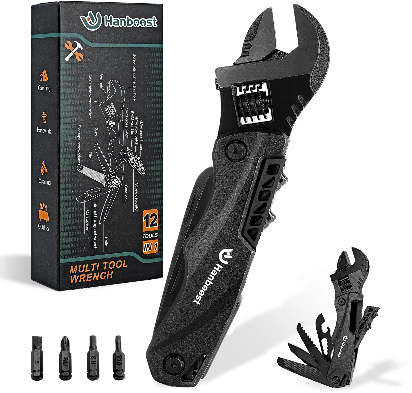 Hanboost M1 12-in-1 Multi-Function Wrench łączy 12 funkcji w poręcznej konstrukcji, oszczędzając Ci sięgania po kilka nieporęcznych narzędzi. Wykonany z wysokiej jakości materiałów i uszlachetniony hartowaniem wysokiej częstotliwości, M1 charakteryzuje się wyjątkowo wysoką twardością i trwałością. Specjalny, wielowarstwowy proces galwanizacji niezawodnie chroni powierzchnię przed wodą, rdzą i utlenianiem, dzięki czemu narzędzie działa niezawodnie nawet w trudnych warunkach.