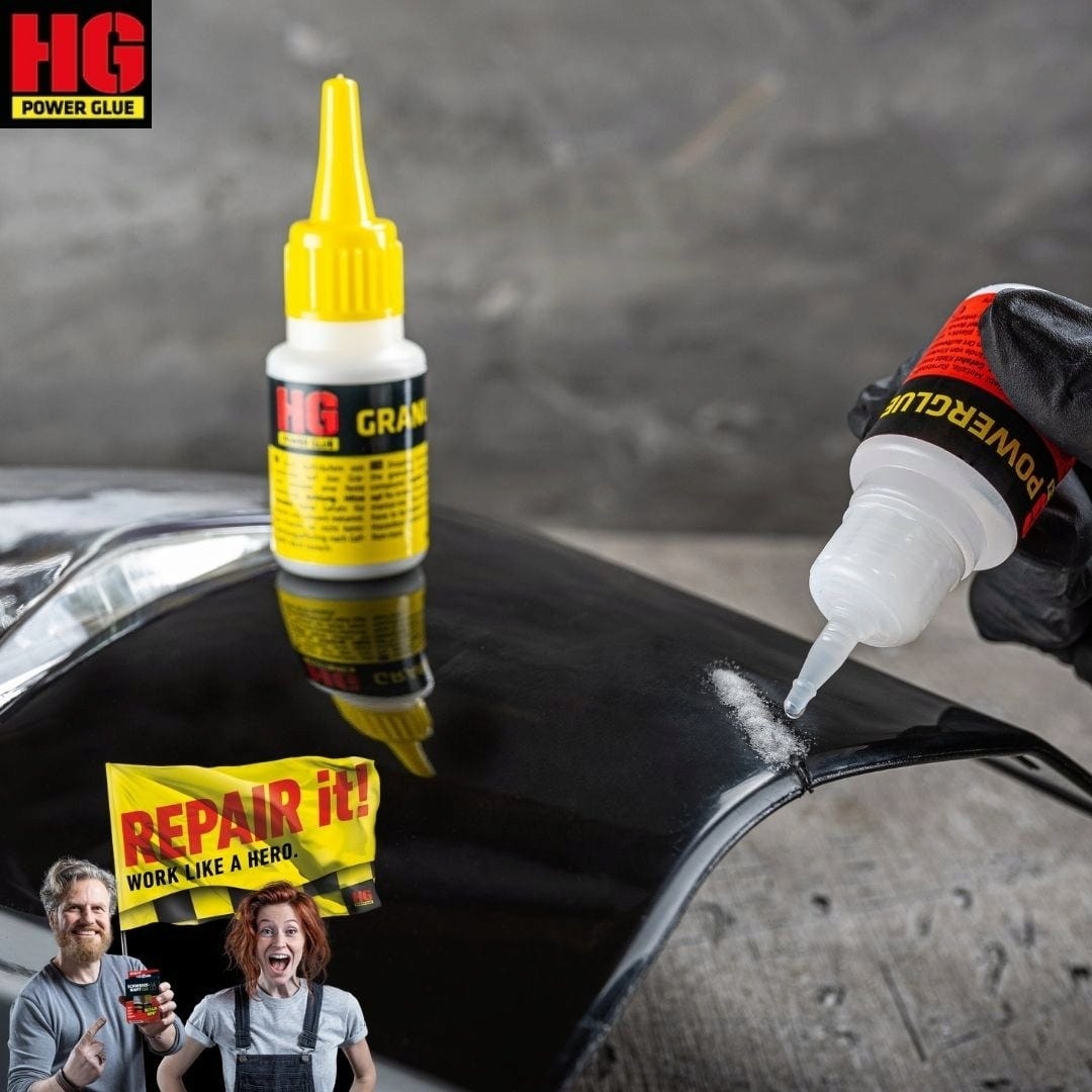HG Power Glue Spoina spawalnicza w butelce to wydajny 2-komponentowy system klejący składający się z granulatu i kleju, opracowany z myślą o szczególnie mocnych i wytrzymałych połączeniach. Idealnie nadaje się do napraw, w których tradycyjny klej błyskawiczny nie wystarcza.