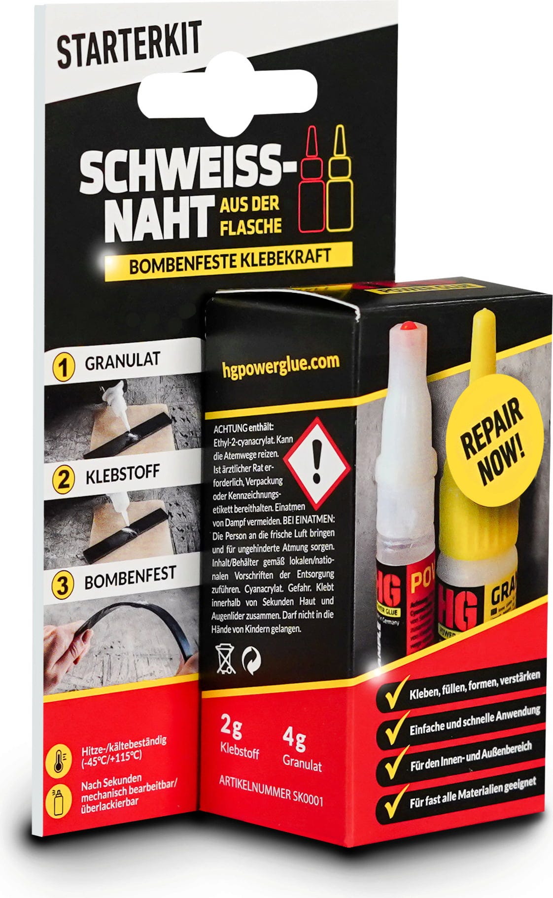 HG Power Glue Spoina spawalnicza w butelce – zestaw startowy, 2 g / 4 g