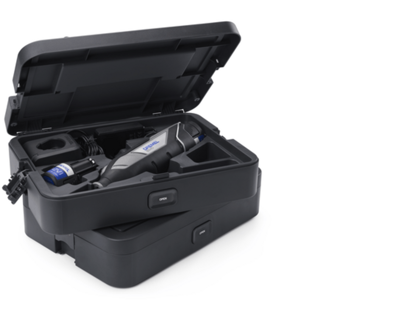 Dzięki ergonomicznej konstrukcji narzędzie wygodnie leży w dłoni i zapewnia optymalną obsługę. Gumowany, miękki uchwyt zapewnia pewną pozycję i redukuje wibracje. Wyposażone w uchwyt do zawieszania, narzędzie można zawiesić na uchwycie narzędziowym Dremel za pomocą elastycznego trzonka. Dodatkowym plusem jest wskaźnik stanu naładowania LED.