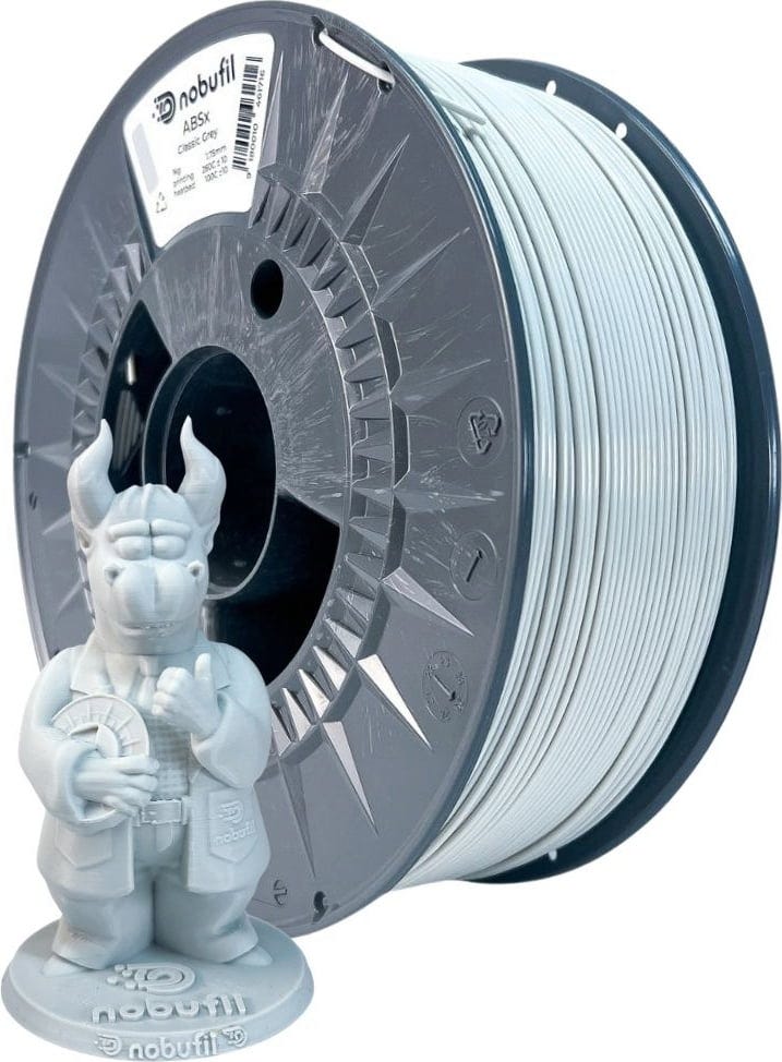 ABSx od Nobufil to filament ABS wykonany z tworzyw sztucznych pochodzących z recyklingu, które są odpadami produkcyjnymi z przetwarzania przemysłowego. W porównaniu do tradycyjnych filamentów ABS, ABSx charakteryzuje się mniejszym skurczem (warping) i zredukowaną emisją zapachu.