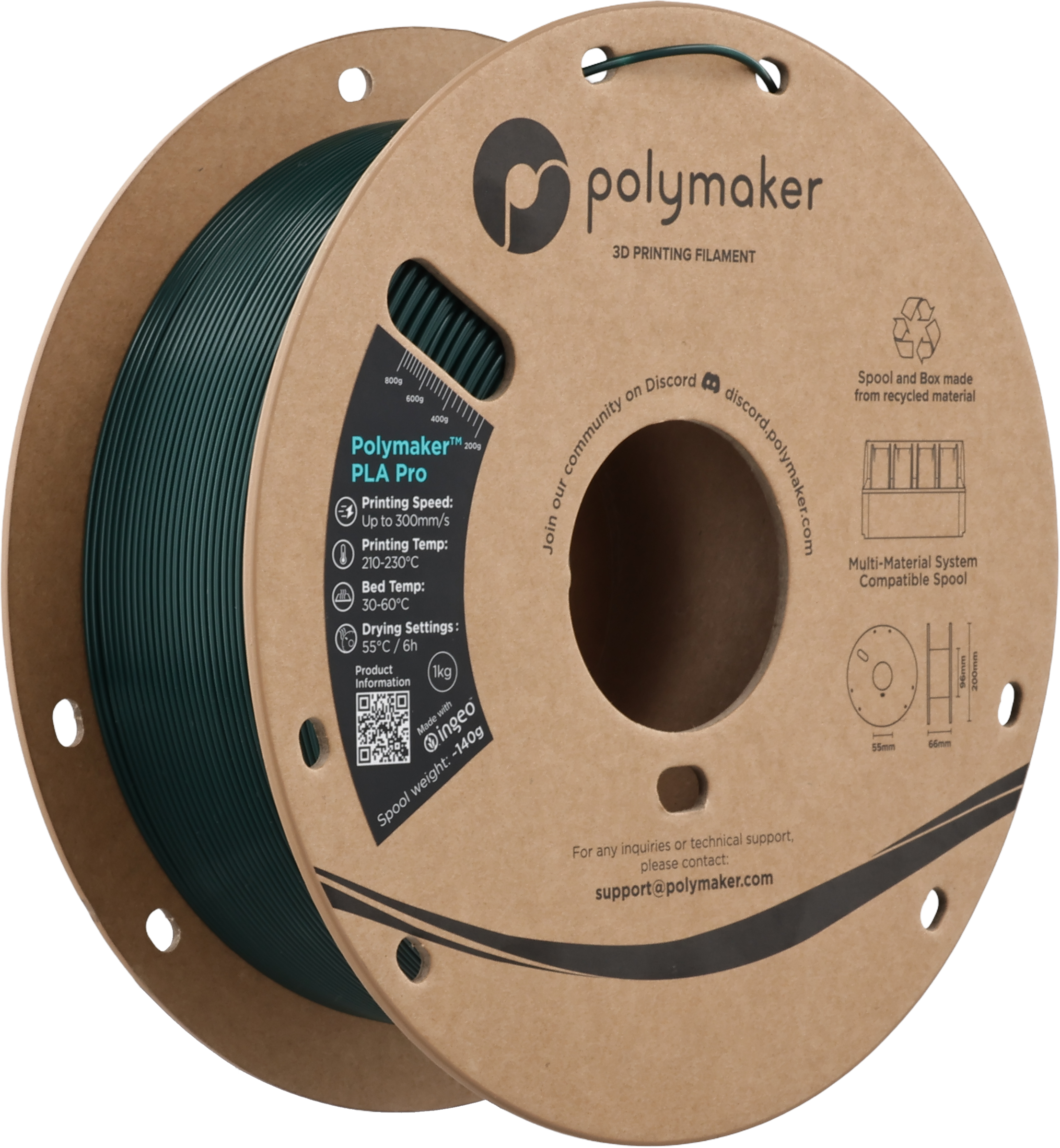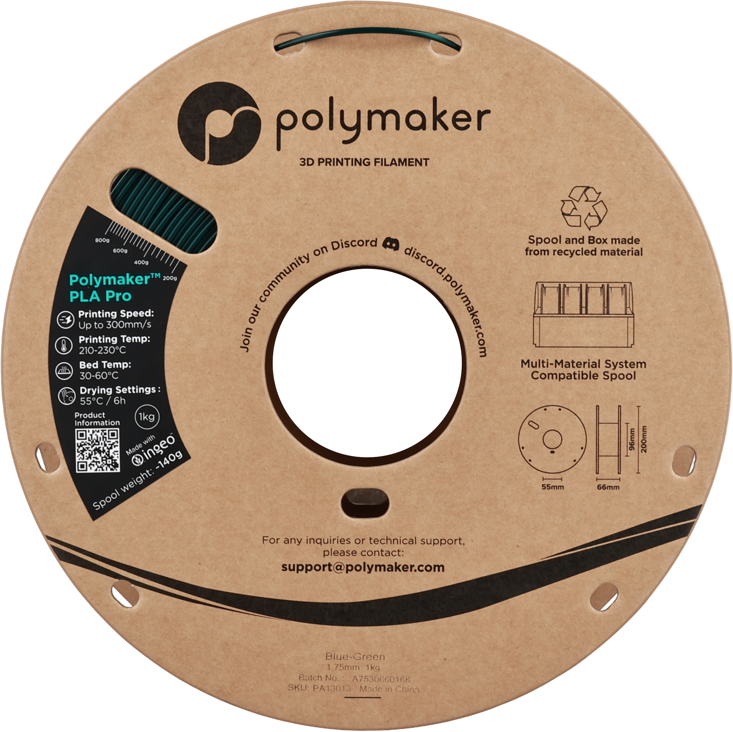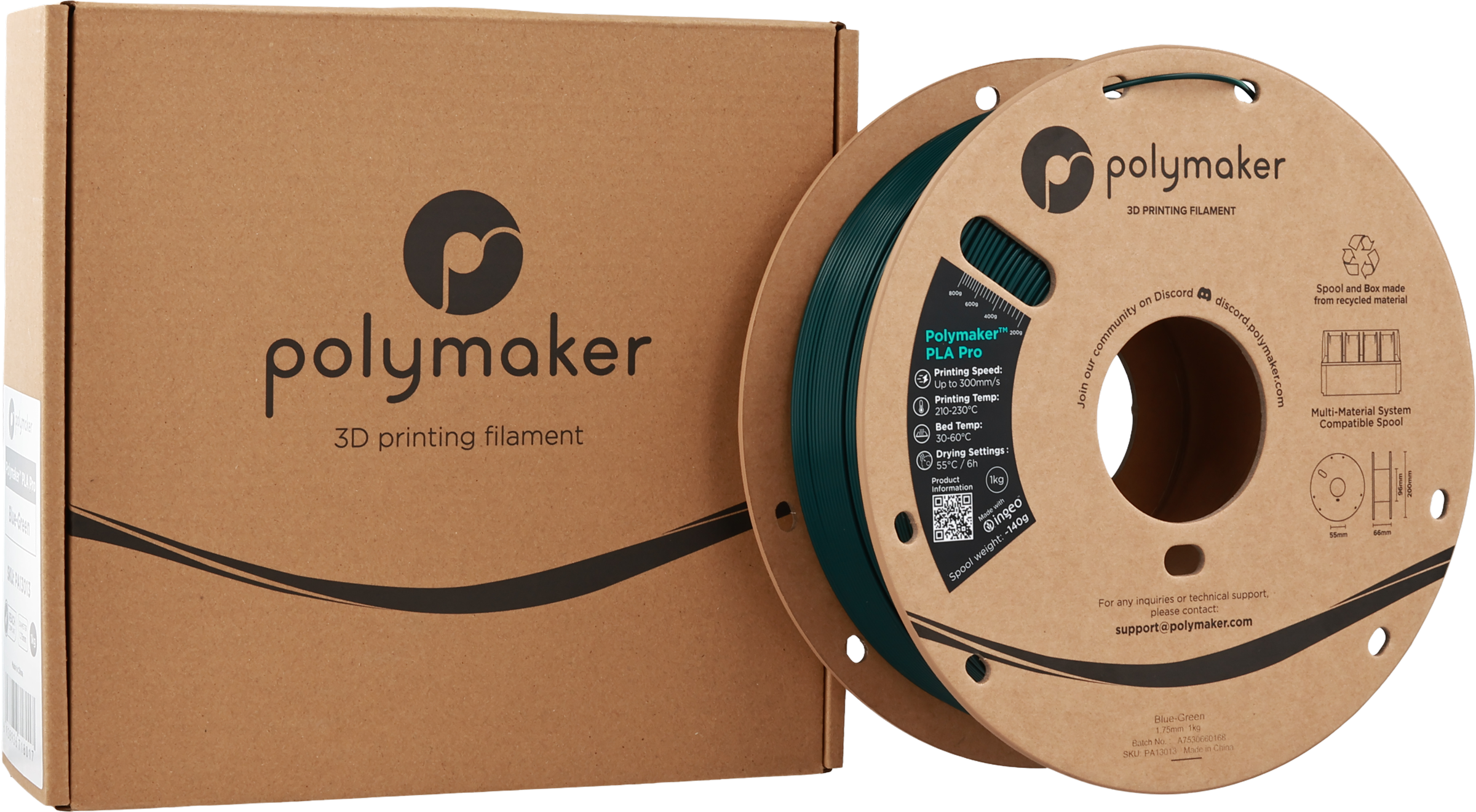 Polymaker PLA Pro Blue-Green, 1,75 mm / 1000 g