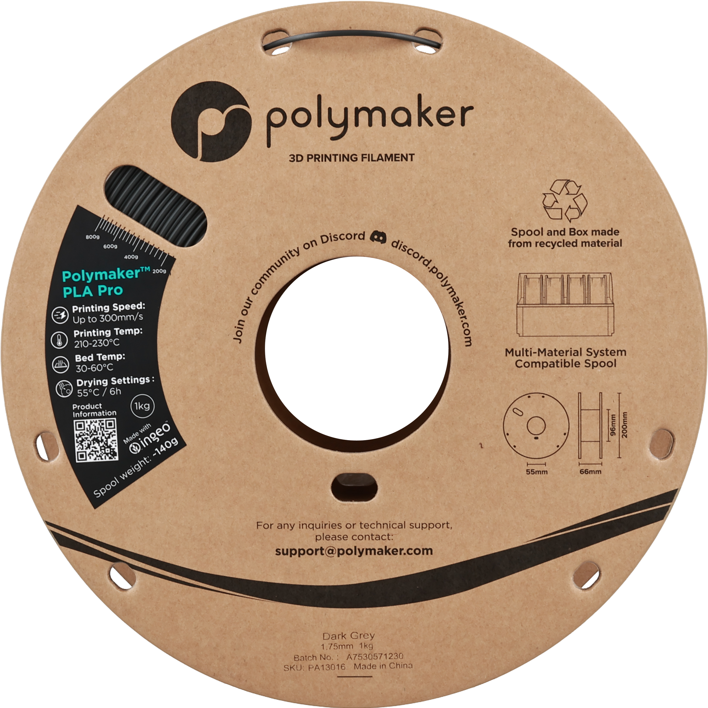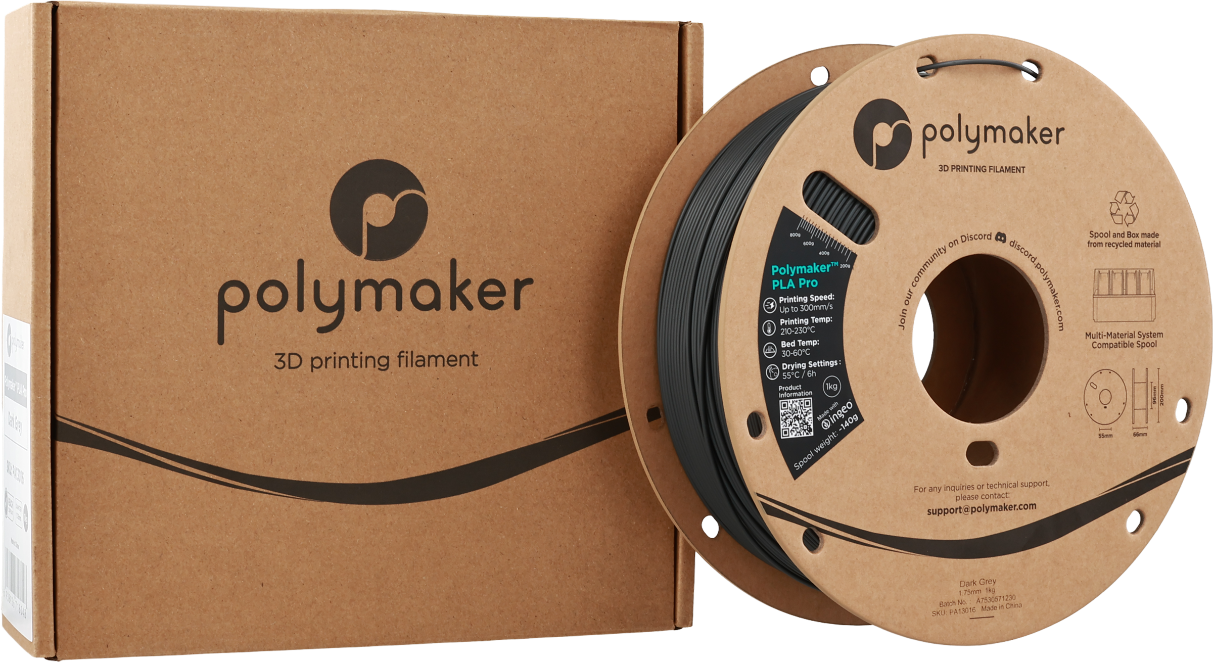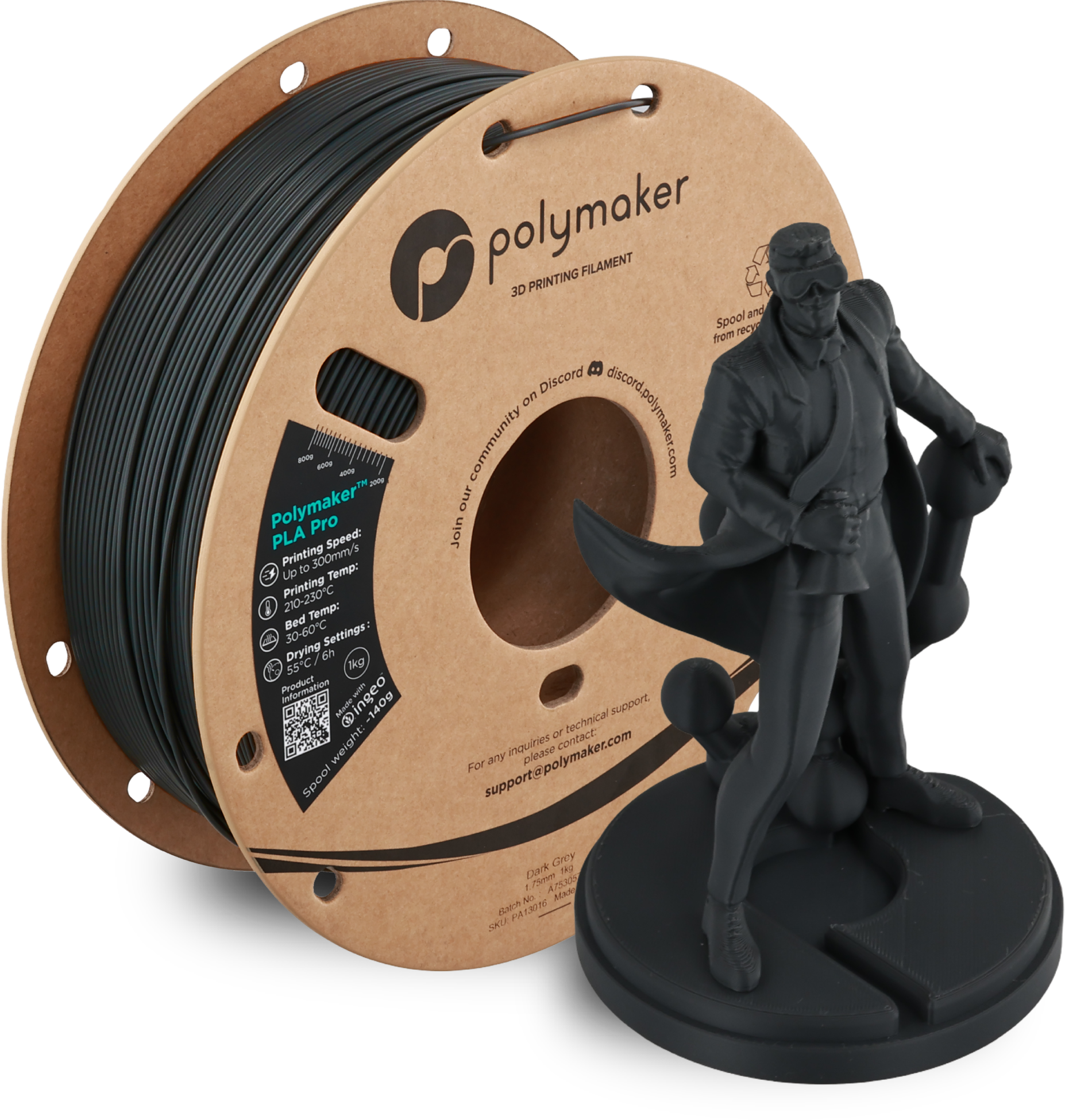 Polymaker PLA Pro Dark Grey, 1,75 mm / 1000 g