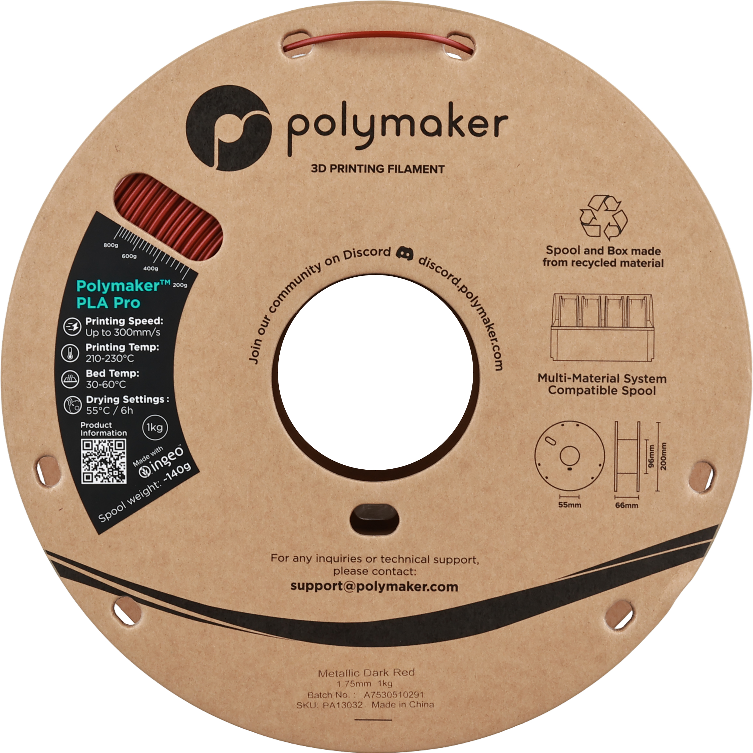 Polymaker PLA Pro Metallic Dark Red, 1.75 mm / 1000 g
