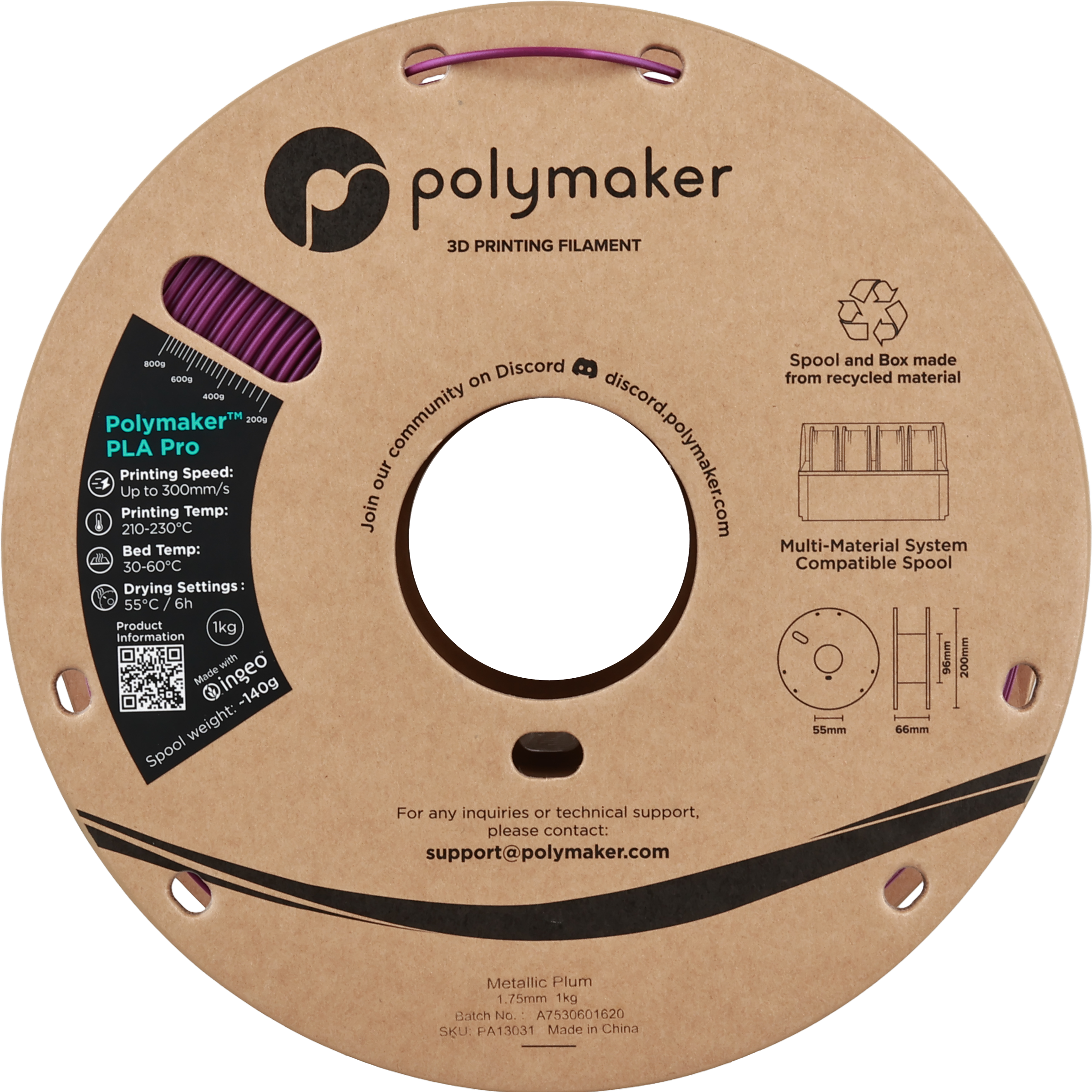 Polymaker PLA Pro Metallic Plum, 1,75 mm / 1000 g
