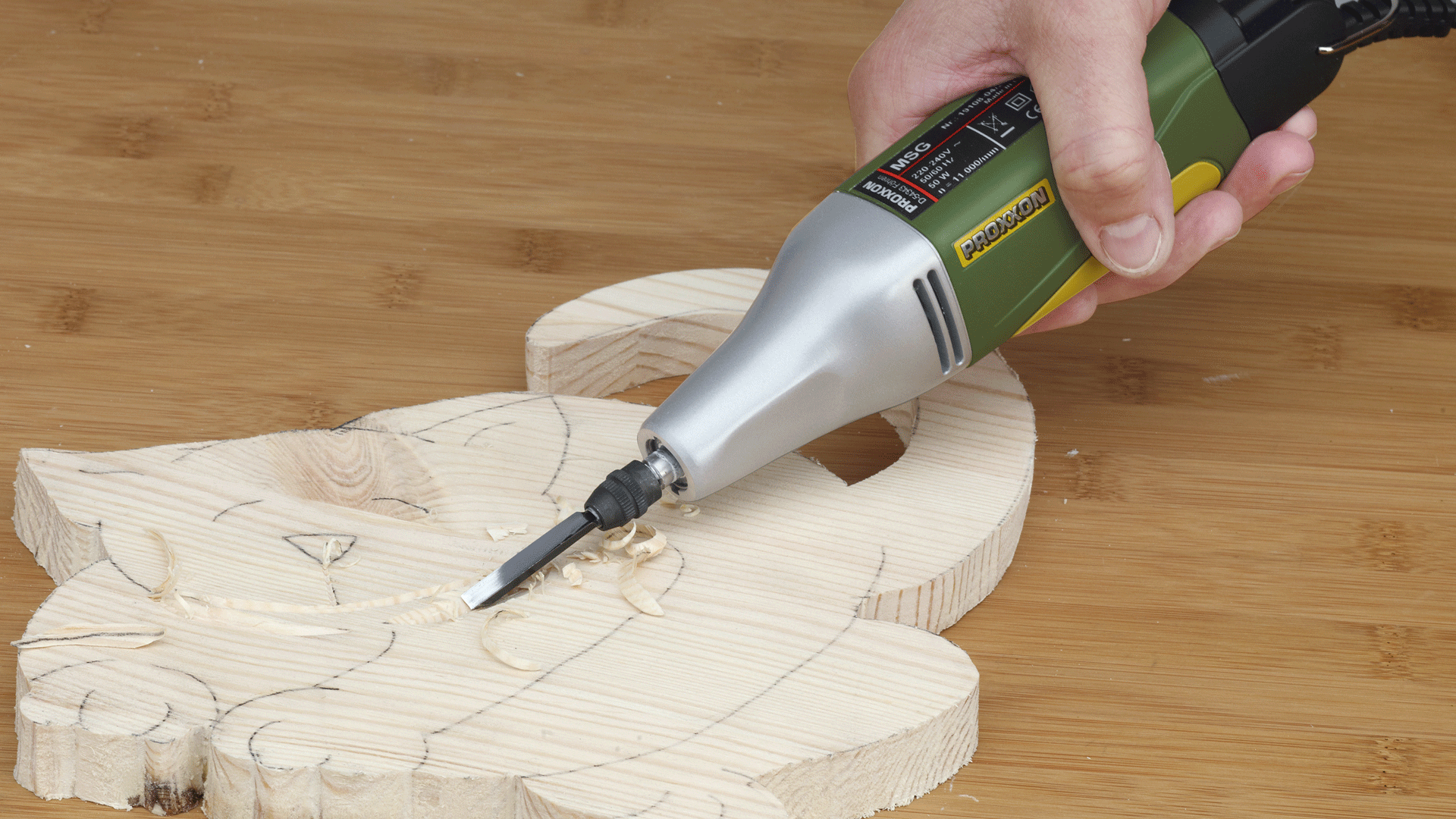 Zmotoryzowane narzędzie do rzeźbienia PROXXON MSG to mocne narzędzie do precyzyjnego rzeźbienia i obróbki. Nadaje się do rzeźbienia we wszystkich rodzajach drewna, do renowacji i obróbki mebli, do odnawiania antyków, do linorytów i do precyzyjnego usuwania koloru. Umożliwia również kontrolowaną i czystą obróbkę gipsu.