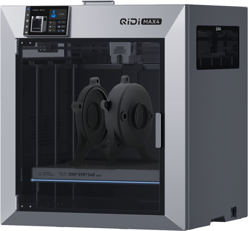 Wraz z Max4 QIDI zapoczątkowuje nową erę stabilnej temperaturowo obróbki materiałów, ponieważ po raz pierwszy wszystkie filamenty korzystają z aktywnie ogrzewanej komory druku. Rezultat: większe elementy, mniej wypaczeń (Verzug) i znacznie wyższa niezawodność procesu.