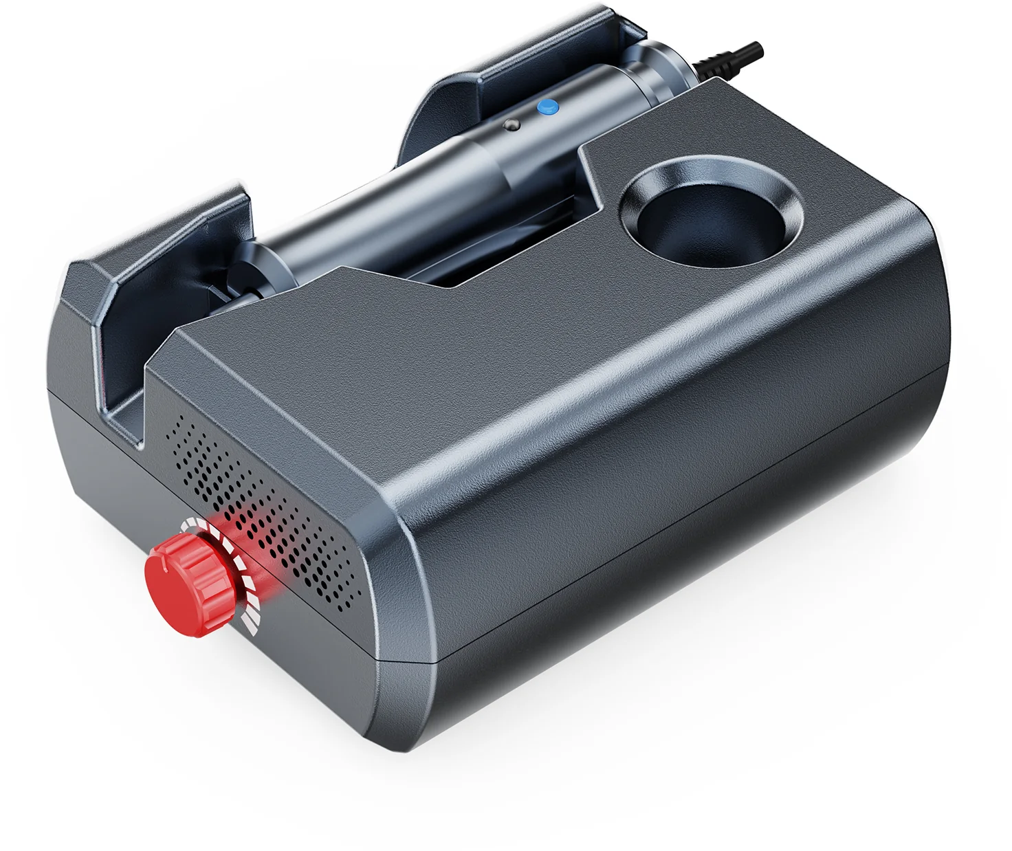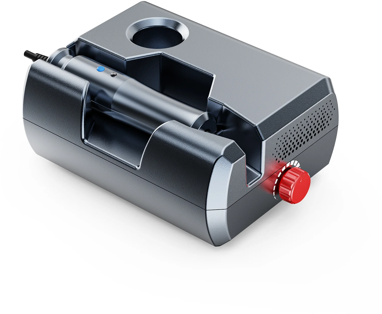 Firma Two Trees zadbała również o praktyczną obsługę: uchwyt oferuje dwie elastyczne pozycje spoczynku, umożliwiając ustawienie noża w sposób najlepiej odpowiadający Twojemu trybowi pracy. Miękkie, przyjazne dla skóry kable gwarantują, że nic nie będzie przeszkadzać, ciągnąć ani zwisać.
